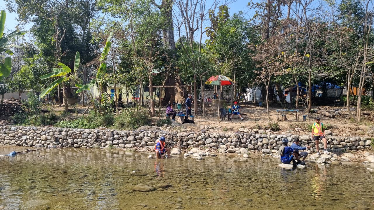 We came back to the main road and took a lunch break at Surabhi restaurant. Post lunch was a slow ride towards Ramnagar. Crossed a Dabka river bridge. All the rivers in the region had a wide riverbeds indicating heavy flows during monsoon season.