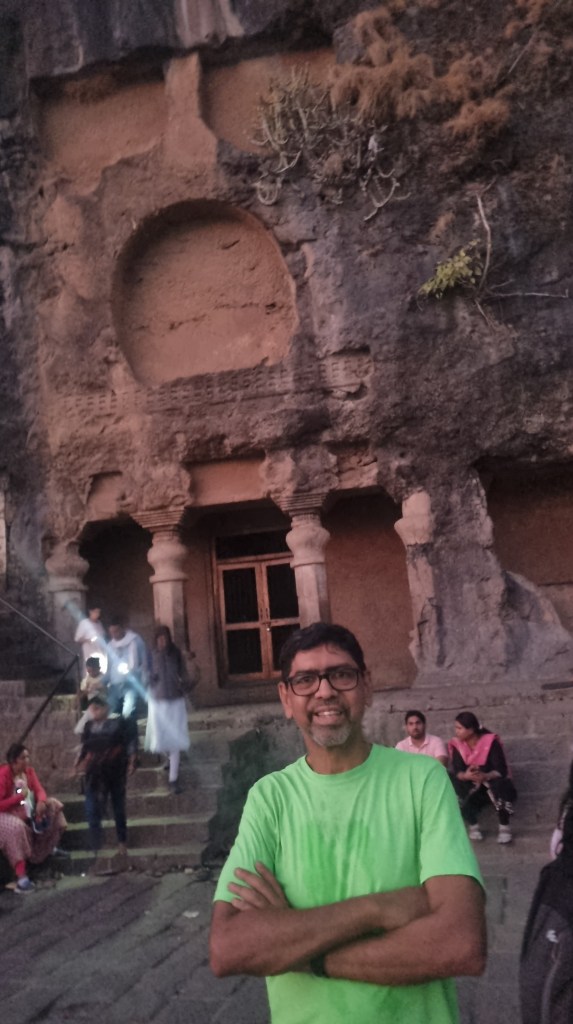 It was 6:15PM when I parked the cycle. As the temple was about to close and it was getting dark, rushed through the temple gate. It was a climb of 300+ steps to reach ancient Buddhist caves having the Girijatmaja Ganesha temple. Had a peaceful darshan of Girijatmaja and a view of Shivneri fort from the top.