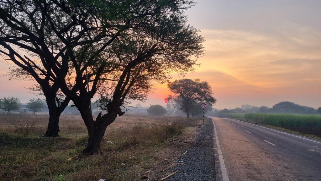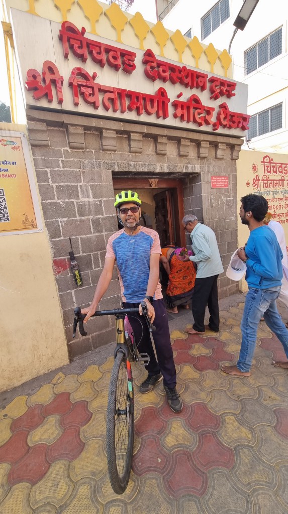 It was a chilly December morning. Started the journey to Ozar in the darkness, bit scared of stray dogs in an unknown place. By sunrise, my hands were almost frozen with hardly any sensation while holding the cycle handle grips. On the way I noticed a milestone mentioning Ranjangaon around 55KM. I did some mental calculations and decided to move to Ranjangaon instead of Bhimashmankar. After two Ashtvinayakas, third Ganapati was a logical thing than visiting his father :-). When you are a solo traveller, you are the boss 🙂