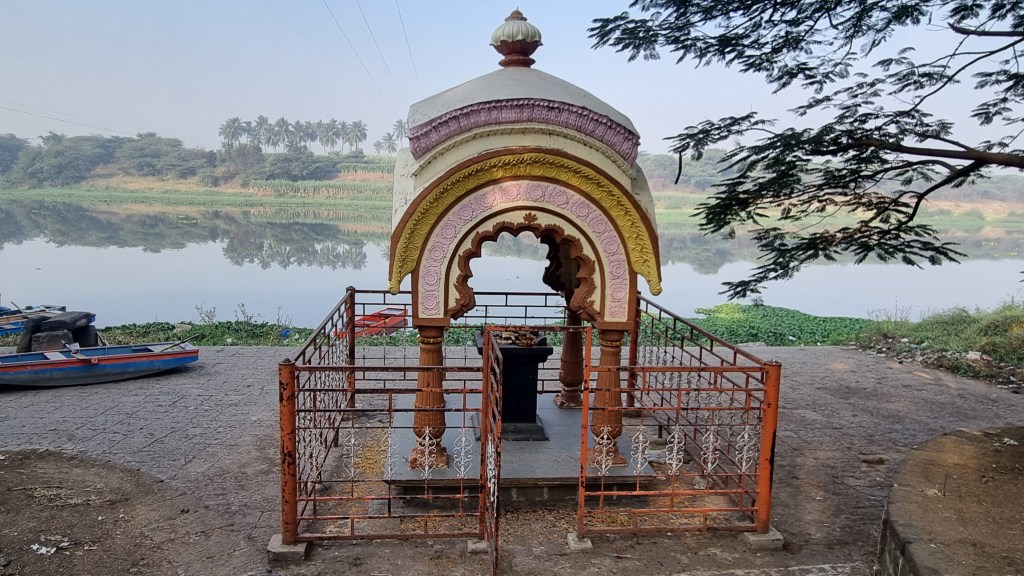 At Lonikand, left the Nagar highway and took Theur Kesnand road. Reached Sati Ramabai sthan on the banks of Mula Mutha river. Ramabai was wife of Shrimant Thorale Madhavrao Peshve.