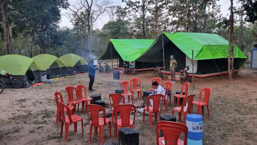 A night campfire was arranged where we all enjoyed old and ‘not so old’ songs. We tasted ‘Mahua’, a local country liquor made from Mahua flowers, before hitting the luxury beds in the tents. Throughout the journey, the arrangements made gave us a feel of enjoying a luxurious cycling holiday and not a tough cycling expedition :-).