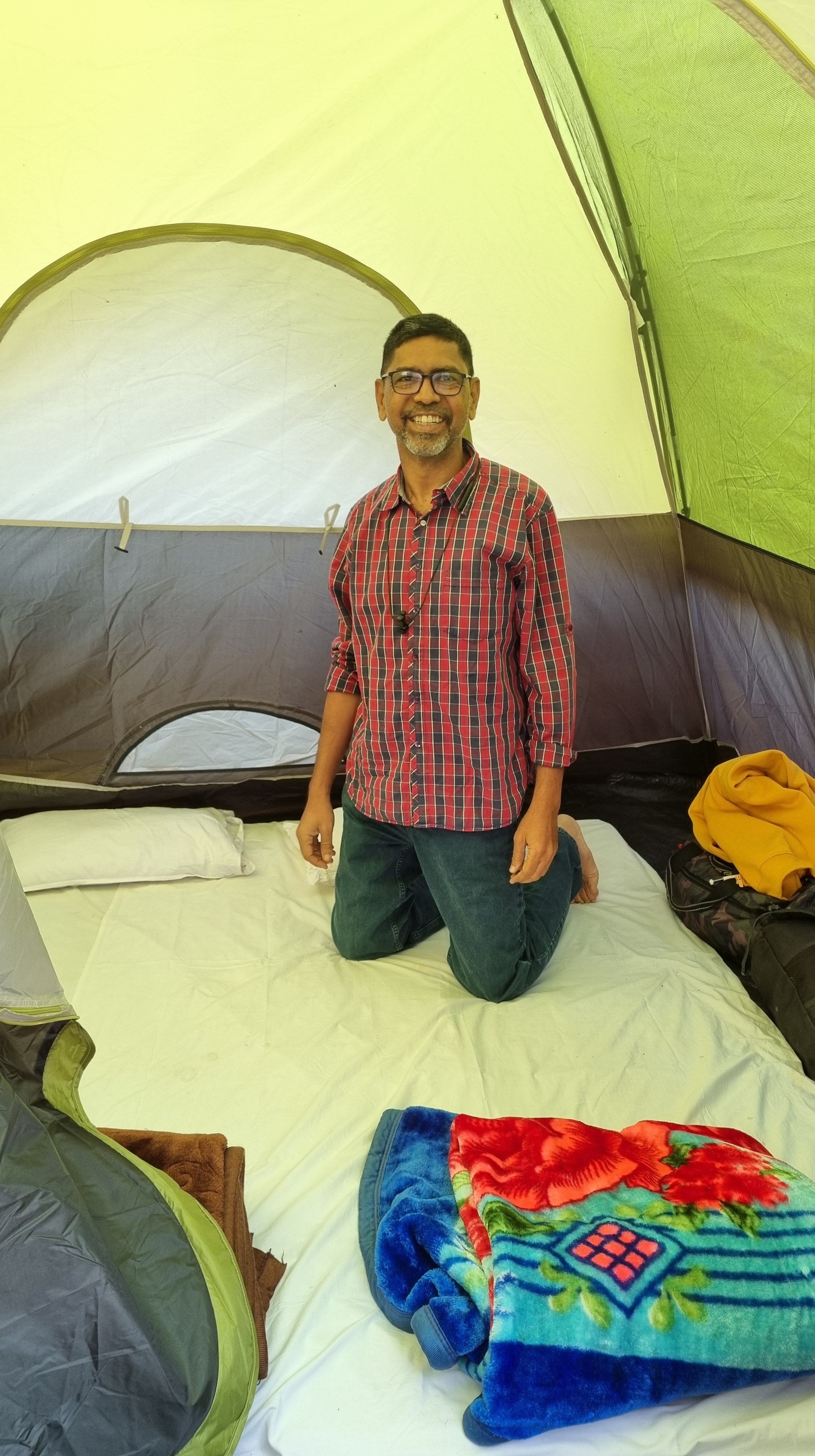 I reached Nagpur by train where I was picked up along with other members and taken by road to the eco-friendly base camp situated at Mogarkasa lake. Other than the forest, lake, nature, I was fascinated by the tents provided. Until now, during various treks and cycling expeditions, I have been staying in small tents with mats or sleeping bags but this was a massive tent with comfortable mattress, blankets and a pillow, a pure luxury 🙂