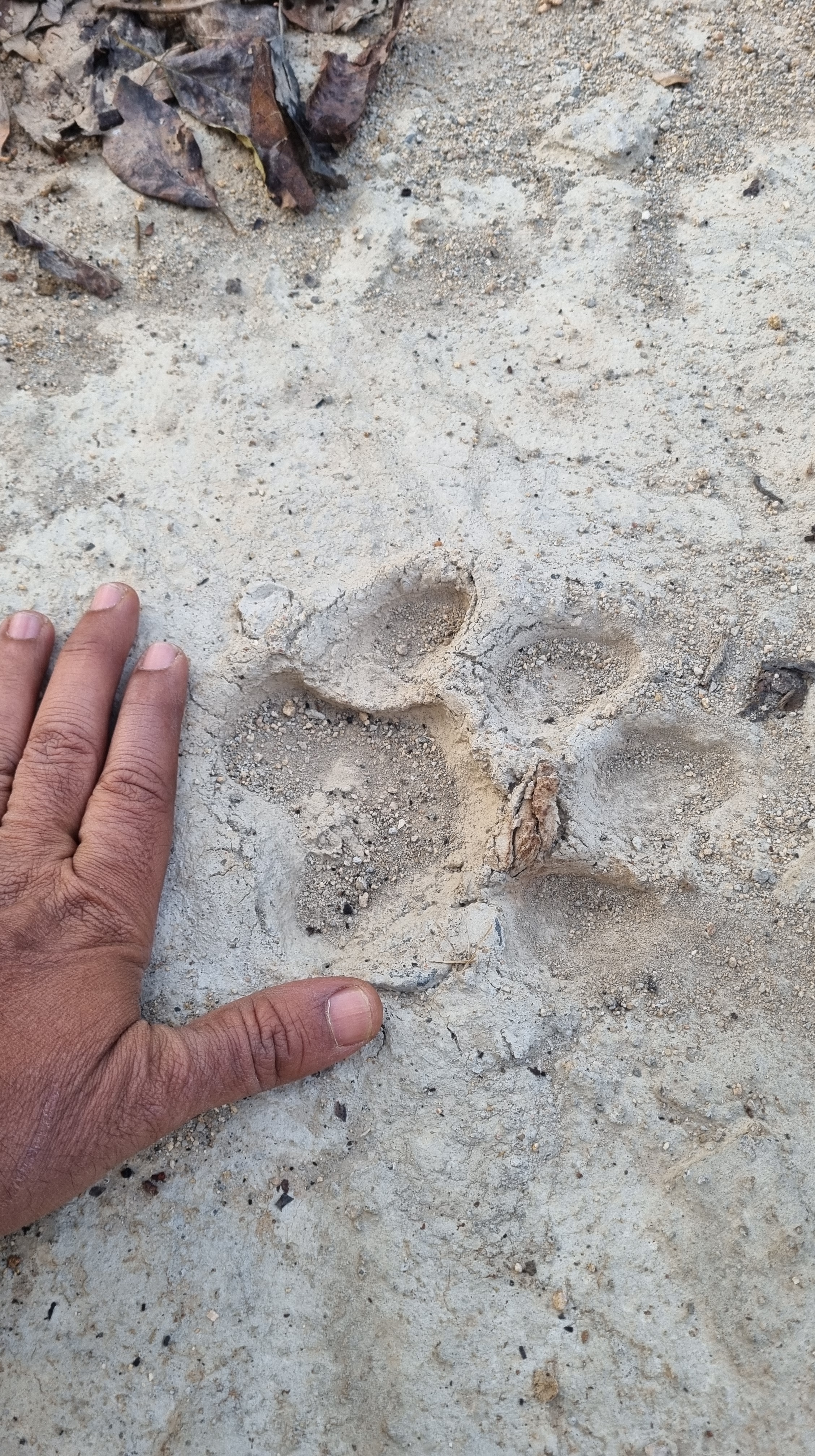Like the previous day, got up at 5:30AM. Had hot tea in the chilled weather with some gupshup, got ready and hit the pedal again after 7AM to visit the nearby village. On the way, we were shown a spot where a tiger’s footprints have been permanently embossed in a concrete culvert.