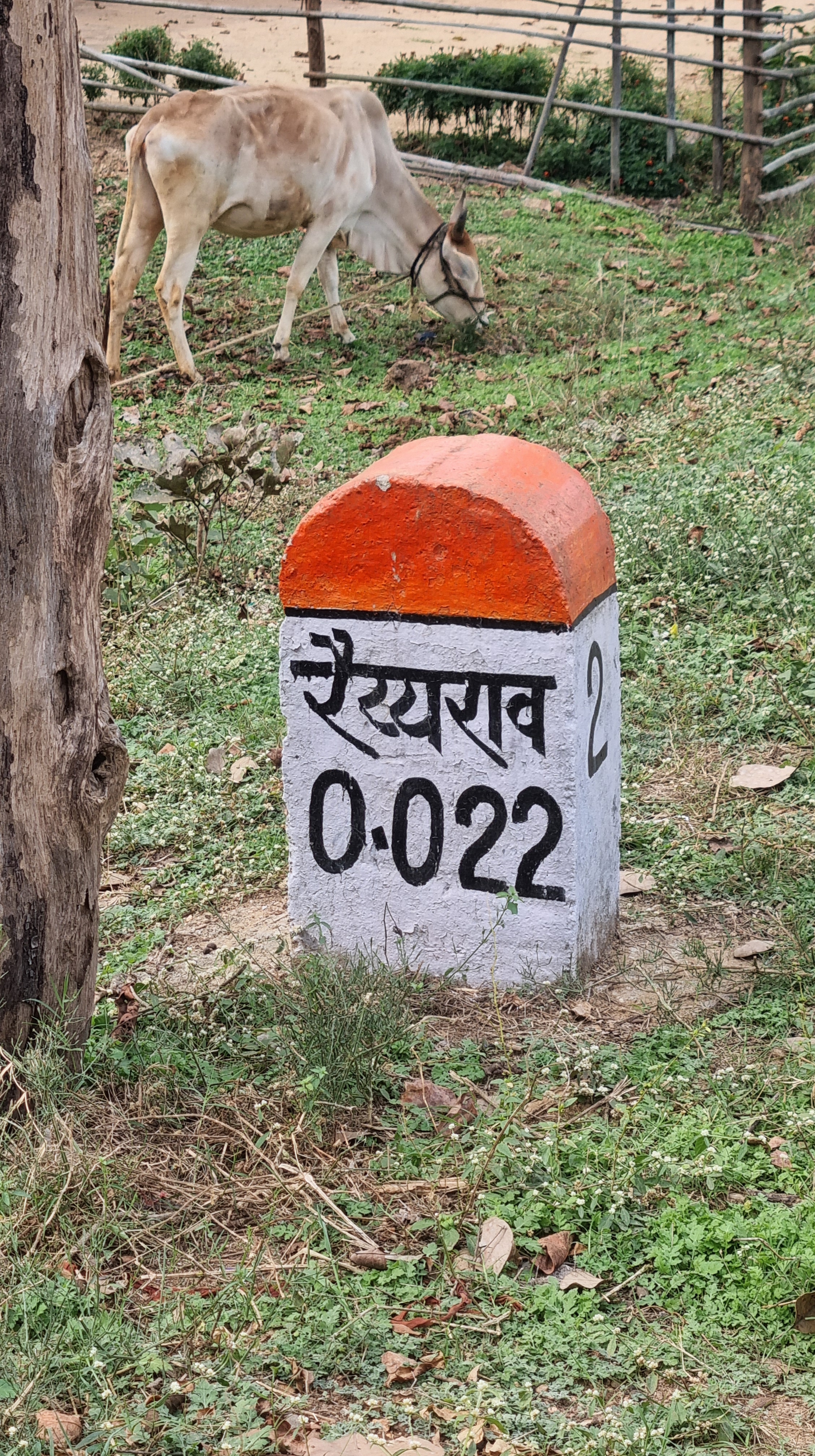 On the way we noticed there were milestones with distances mentioned in very odd numbers. Raiyyarao 0.022, Potiya 1.100, Jirewada 2.400, Vijaypani 2.050, Teliya 4.500. We were wondering reasons for such accuracy. And then I looked at the rear of the milestone of Teliya 4.500. On the other side, it was Turiya 2. That explained the logic. On one side they had measurements in round numbers which causes mathematically calculated odd numbers on the other side of the milestone 🙂 .