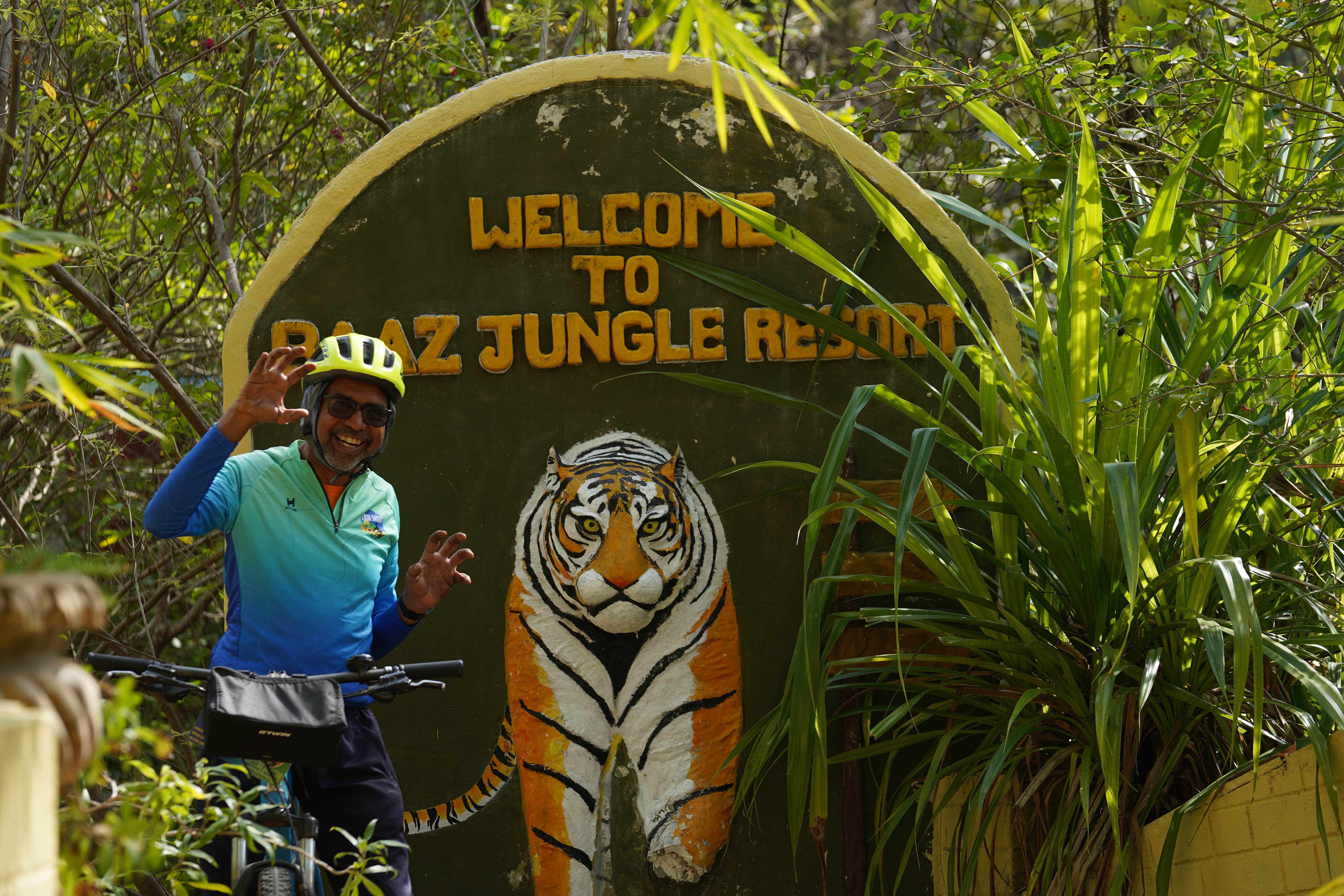 The route we were pedalling through was a jungle safari route where tourists travel in safari jeeps to watch wildlife. We were lucky and unlucky not see any tiger on the way. But the safari tourists were lucky to see the cyclists species in the forest 🙂
